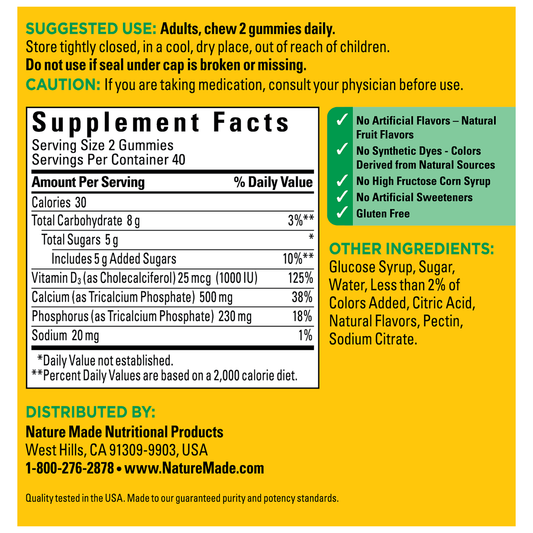 VYNATURA™ Calcium Gummies 500 mg per serving with Vitamin D3
